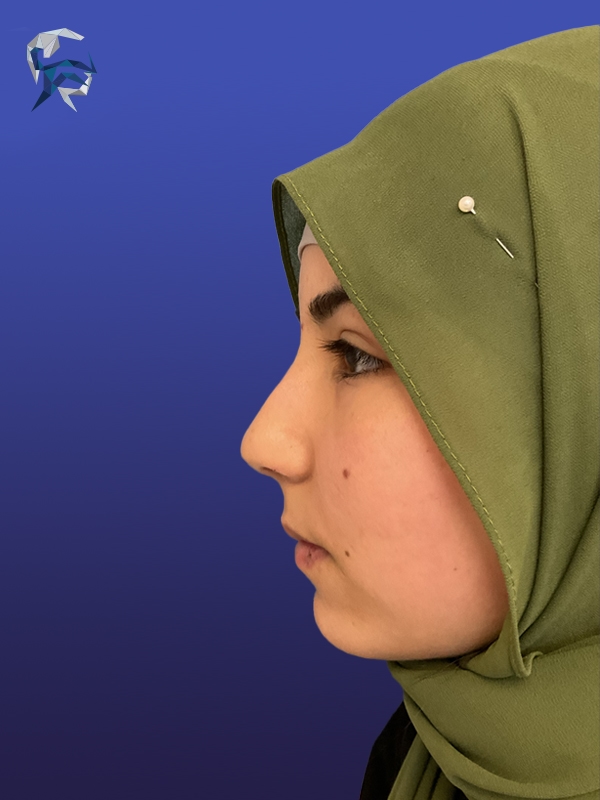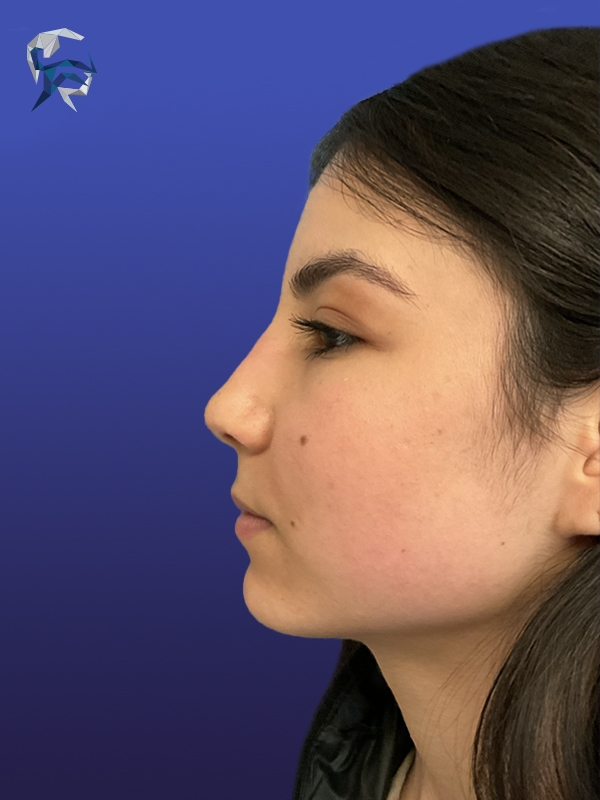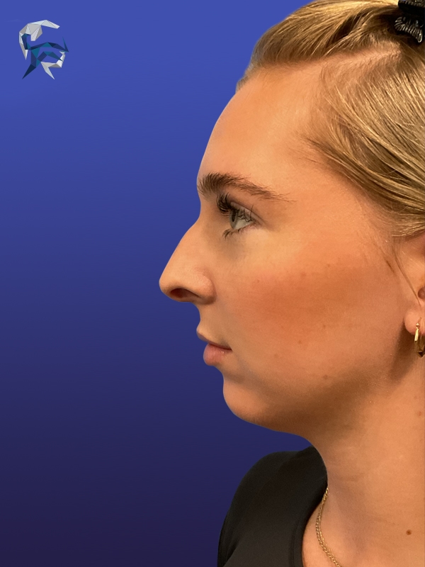 This patient had a dorsal hump reduction and tip elevation performed, giving her an attractive feminine nose in the end.