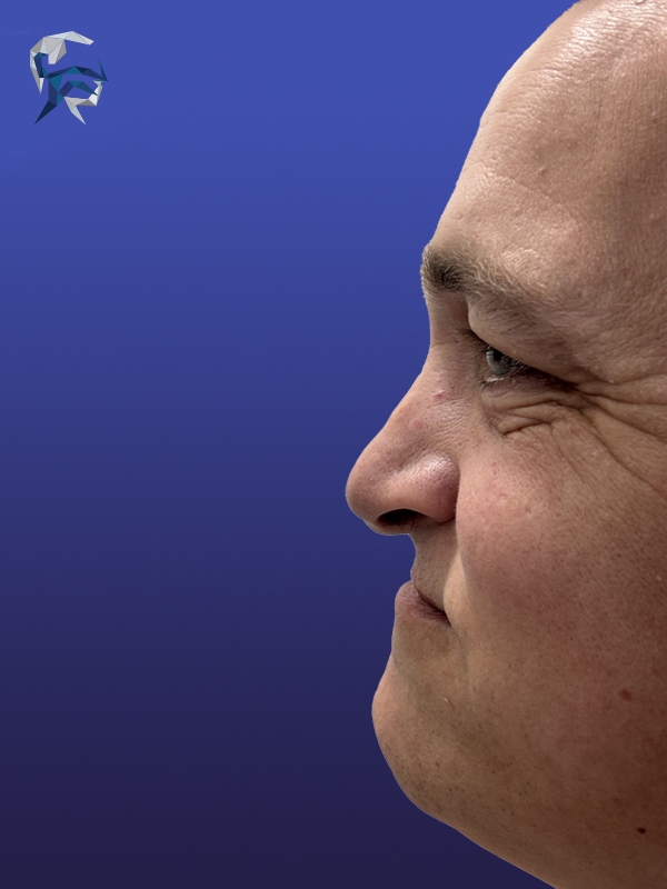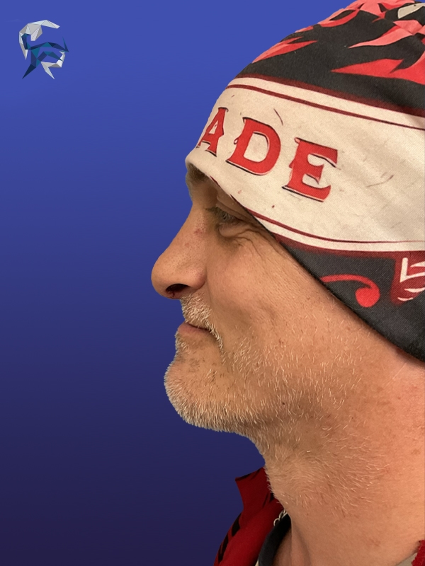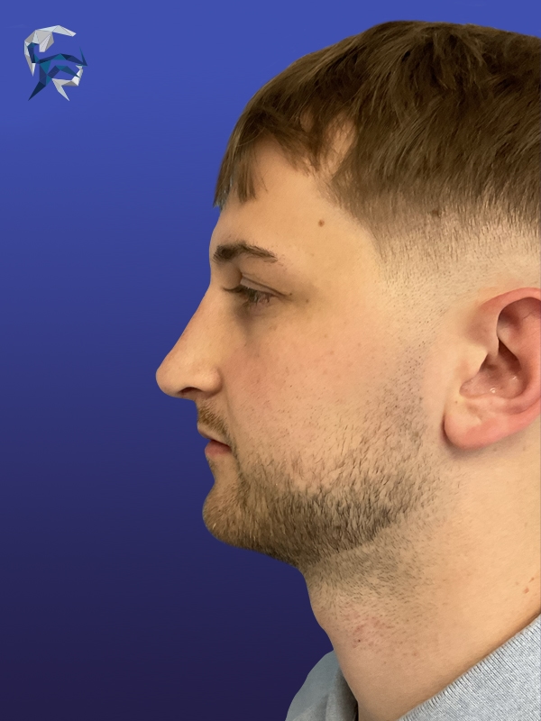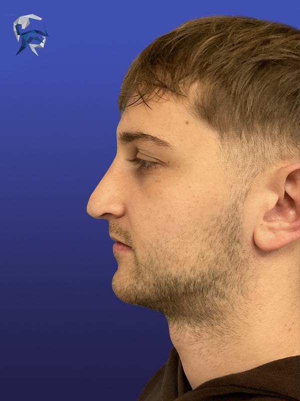 This man had a droopy tip and curved nose, and due to his tall stature both were accentuated. He underwent reconstruction with an open approach and donor rib graft giving him a fresh masculine look.