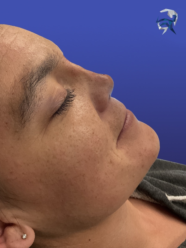 This patient underwent a liquid rhinoplasty to elevate her saddle nose depression. Procedure done under local anesthetic in 20 minutes over two sessions.