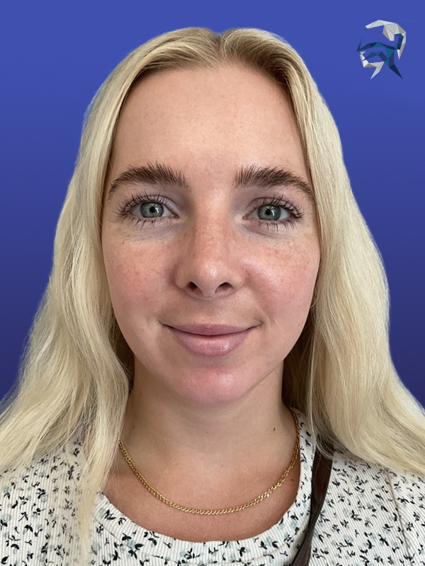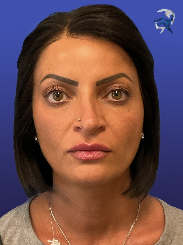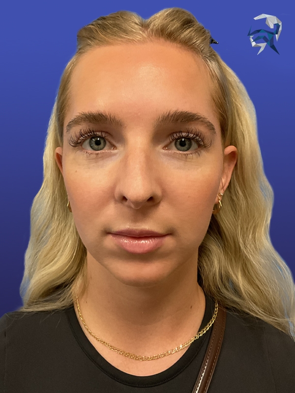 This patient had an unfortunate nasal injury that left her with a saddle nose. She underwent three sessions of liquid rhinoplasty to restore a natural and nearly normal look.