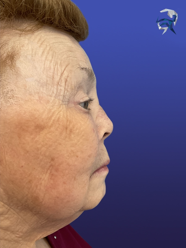 This older lady had a saddle nose deformity from an underlying disease, and was unable to undergo surgery. Her correction was achieved with liquid rhinoplasty filler technique over several sessions.